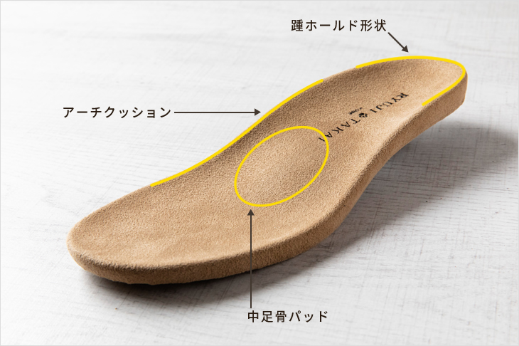 縦横に土踏まずを立体的にフォローする、抗菌・防臭の多機能中敷き(インソール)。