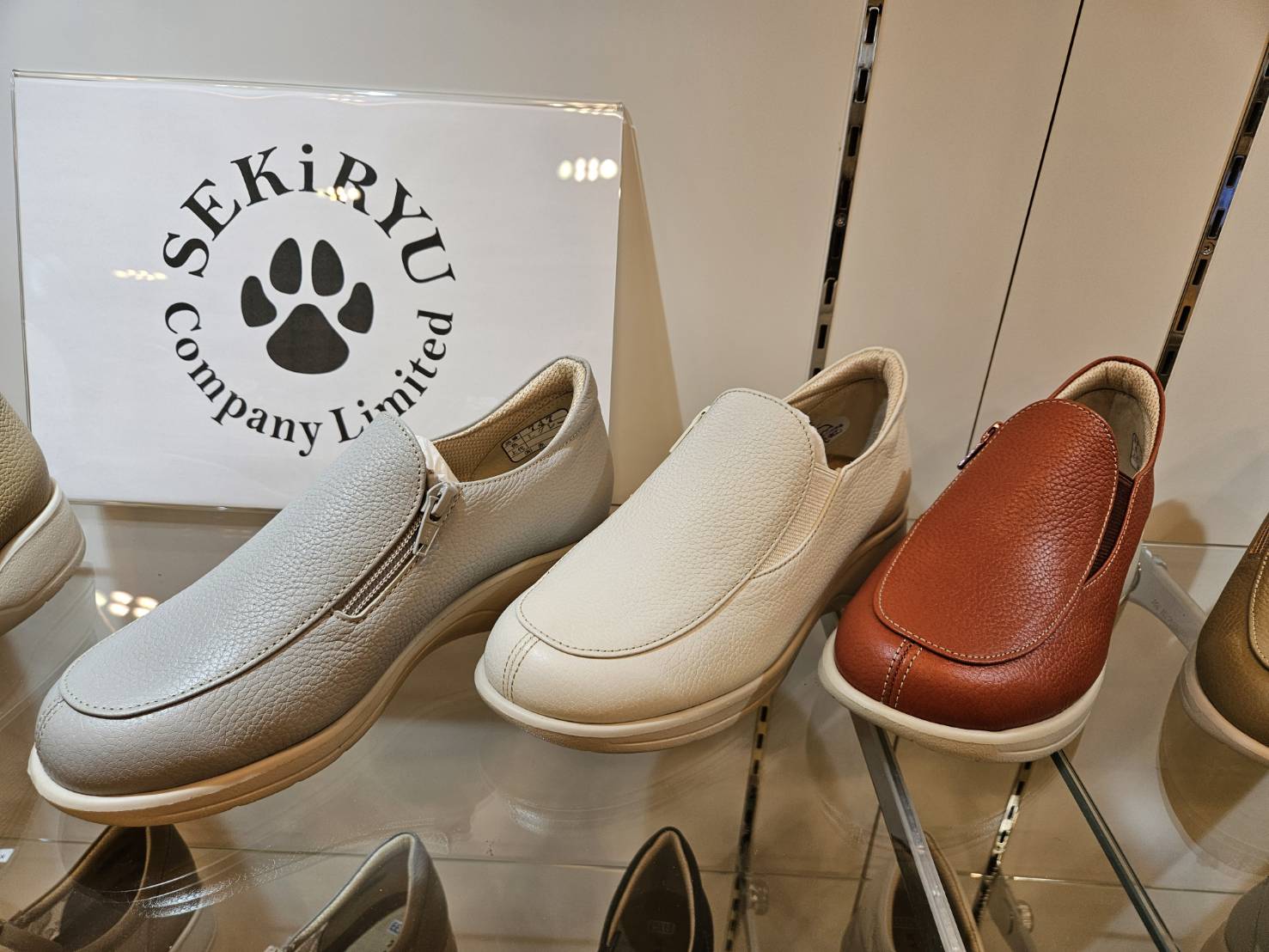 ファスナーとゴム使いのスリップオン