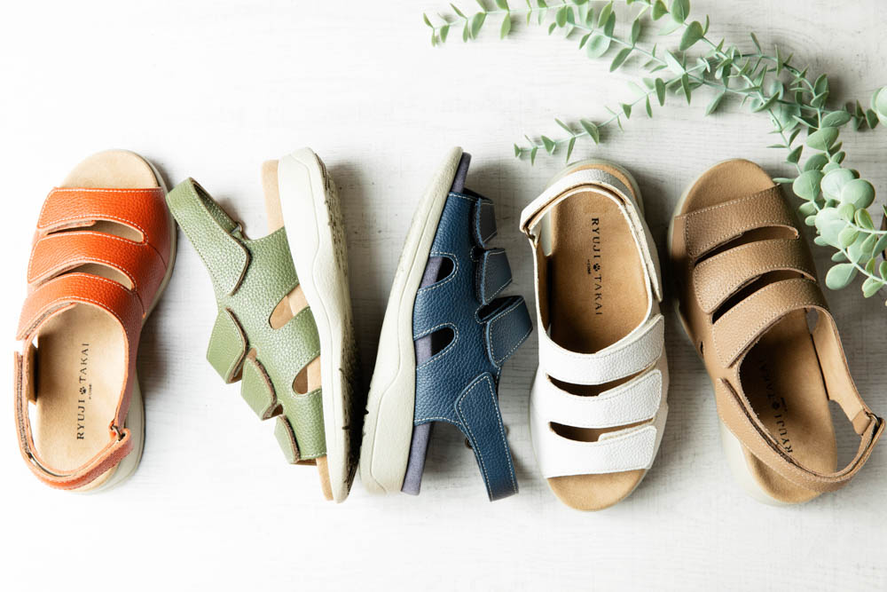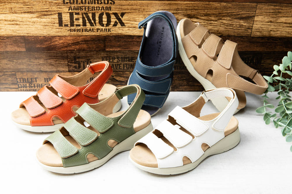 5E ワイドサンダル 甲と踵の面ファスナー(マジックテープ)でフルオープンタイプ 足裏アーチにフィットする赤龍オリジナルフットベッドで歩行時の横ずれを防止。歩けるサンダルを可能にした。